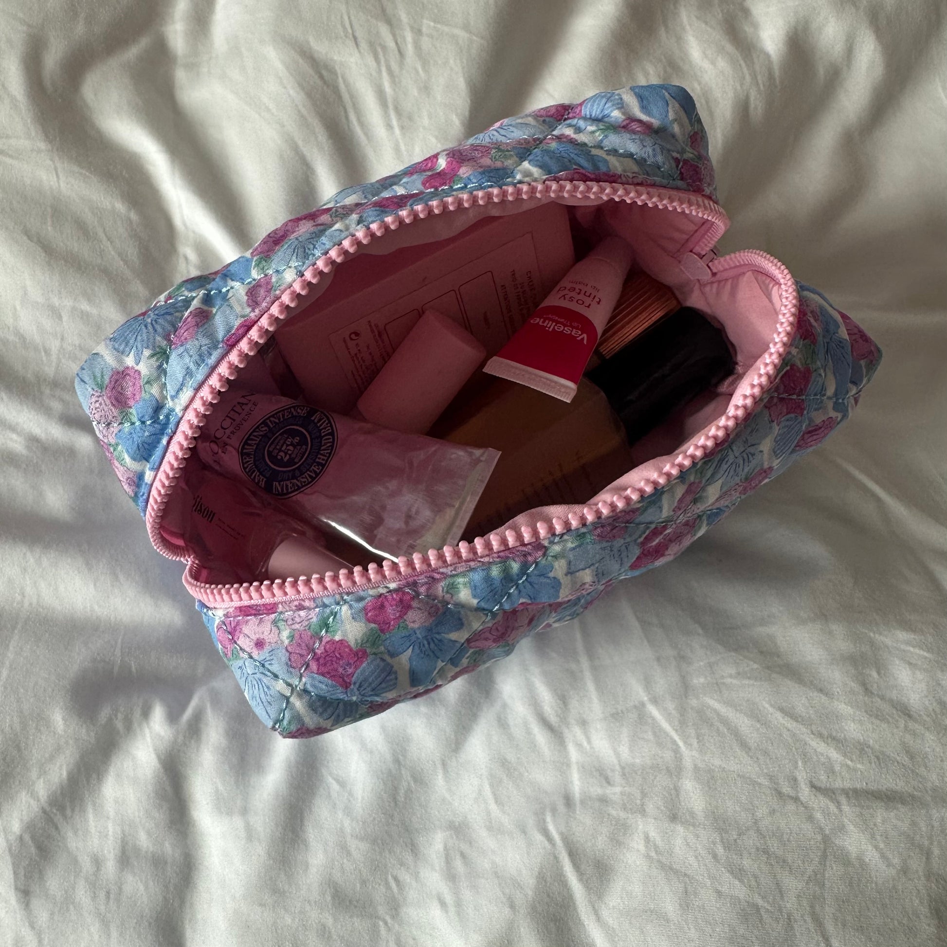 Rosy Ribbon is the perfect blend of elegance and charm, designed for those who love a touch of floral beauty. With its delicate pink roses and graceful blue ribbons, this spacious pouch securely holds all your essentials. Whether at home or on the go, Rosy Ribbon adds a sweet, feminine touch to your collection.